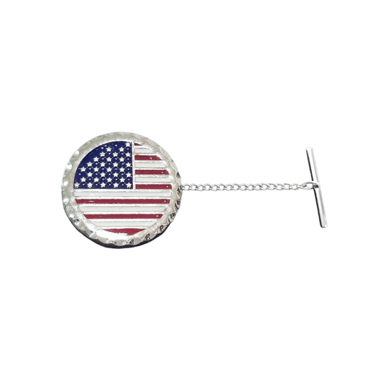 12 Pcs Round American Flag Tie Bar / Hand Painted with Red, White, and Blue Enamel Epoxy / Gold or Silver Electroplated Finish.